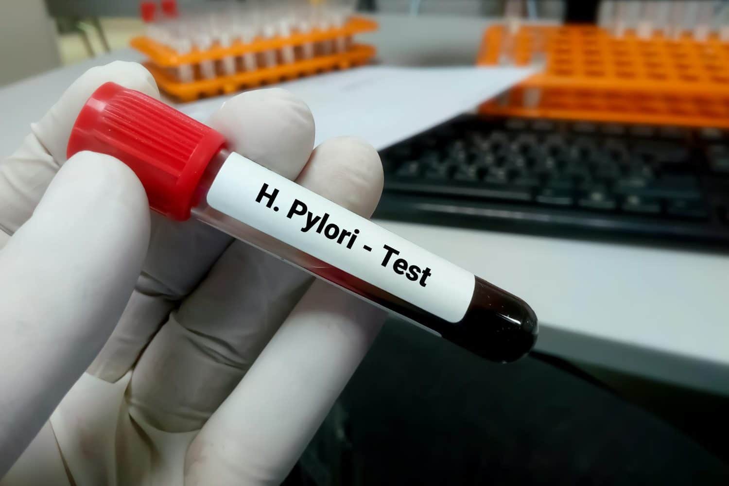 El análisis de una muestra de sangre puede revelar la presencia de una infección por H. pylori activa o previa en su cuerpo. Sin embargo, las pruebas de respiración y de heces son más eficaces que un análisis de sangre para detectar infecciones activas por H. pylori.
